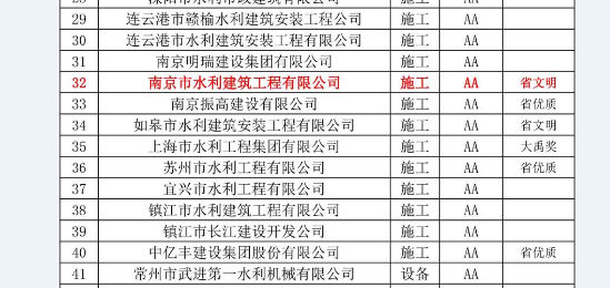 江苏省水利厅 通知公示 2018年度江苏省水利雷火.竞技(中国)官方建设从业单位信用等级评定结果公布,雷火.竞技(中国)官方名列32名。